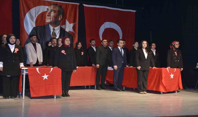 Milli Eğitim Müdürlüğü tarafından hazırlanan program Atatürk anıtına çelenk sunulmasının ardından saygı duruşu ve İstiklal Marşı okunması ile başladı.