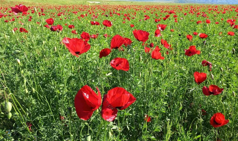 Gelincik çiçekleri, kırmızı ve yeşilin en güzel tonlarını buluşturarak görenleri kendine hayran bırakıyor.