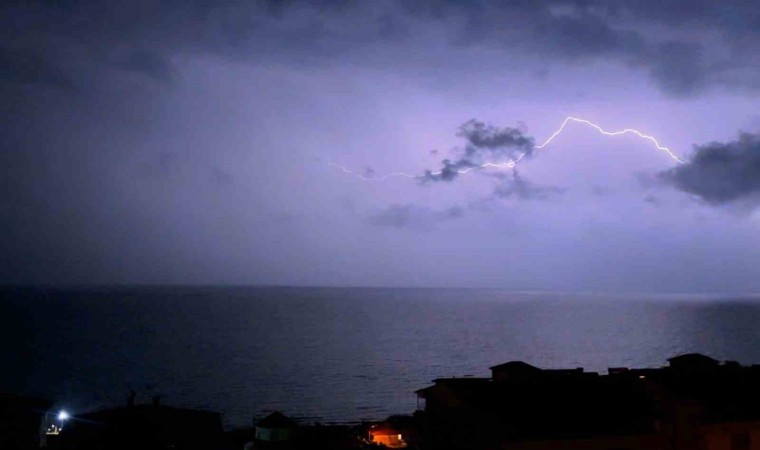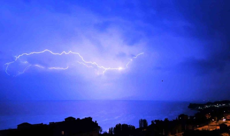 Bitlis’in Ahlat ilçesinde etkili olan gök gürültülü sağanak yağışla birlikte Van Gölü’ne düşen şimşekler adeta geceyi gündüze çevirdi.