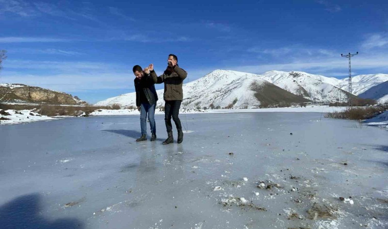Donan göletlerin üzerinde halay çektiklerini söyleyen M. Ali Akarsu, “Sıcaklıkların düşmesinden sonra buradaki irili ufaklı göletler donmuş. Buradan geçerken buzlanmayı gördük. Üzerinde kaydık, halaylar çektik” dedi.
