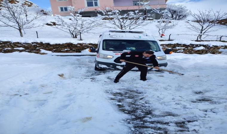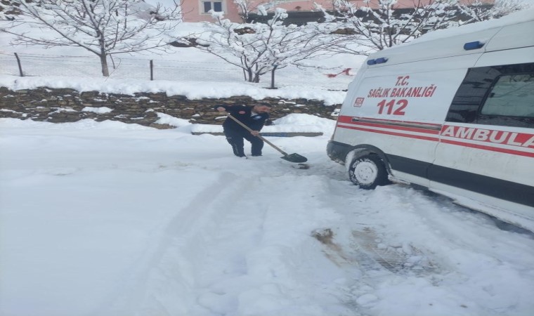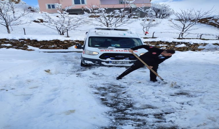 Edinilen bilgiye göre, Hizan ilçesine bağlı Köçyiğit köyünde yaşayan 80 yaşındaki tansiyon hastası vatandaş rahatsızlanınca ailesi 112 sağlık ekiplerine haber verdi. Hastaya müdahale etmek için hızla bölgeye giden 112 sağlık ekiplerinin bulunduğu ambulans karla kaplı yolda kayarak kara saplandı. Ellerine kürekleri alan sağlık çalışanları, uzun uğraşlar sonucu ambulansı saplandığı yerden çıkardı. Sağlık çalışanları daha sonra hastayı alarak Bitlis-Tatvan Devlet Hastanesine getirdi.