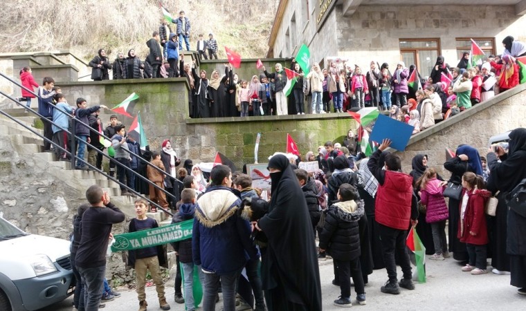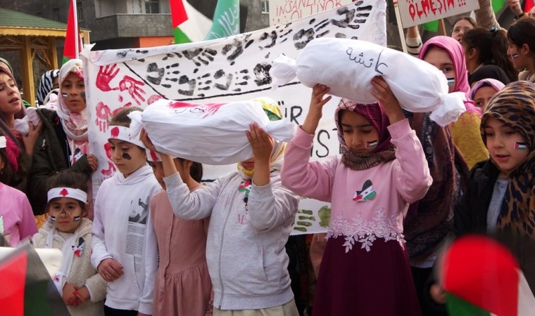 Peygamber Sevdalıları Vakfı Bitlis Şubesi öncülüğünde bir araya gelen çocuklar, anneleriyle birlikte İsrail’in Gazze’deki bebek, çocuk ve kadın katliamlarını yürüyüşle protesto etti.
