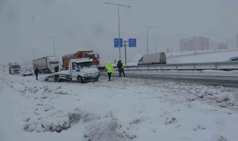 Bitlis’te iki gündür başlayan kar yağışı etkisini arttırarak devam edince özellikle ağır tonajlı araçlar yolda kaldı.