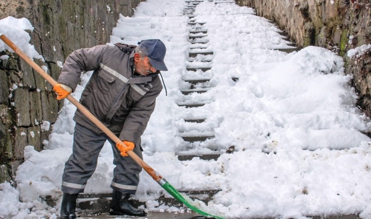 Kent merkezinde ise belediye ekipleri iş makinelerinin giremediği ara sokaklar ve merdivenlerde insan gücüyle karla mücadelesini sürdürürken, yol kenarlarındaki kar birikintilerinin boyu ise yaklaşık 5 metreye vardı.