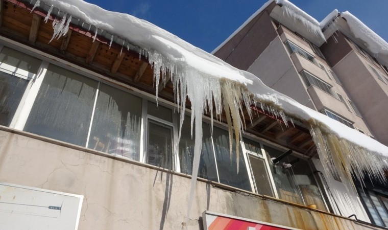 Bitlis’te günlerdir etkili olan kar yağışı yerini soğuk havaya bırakınca, çatılardaki buz sarkıtları da tehlikeli olmaya başladı.