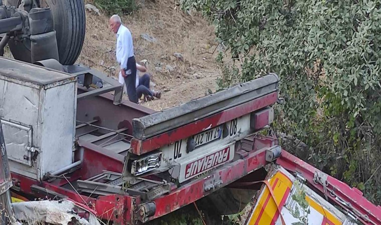Bitlis’te sürücüsünün kontrolünden çıkan tır, yaklaşık 50 metrelik uçuruma yuvarlandı.