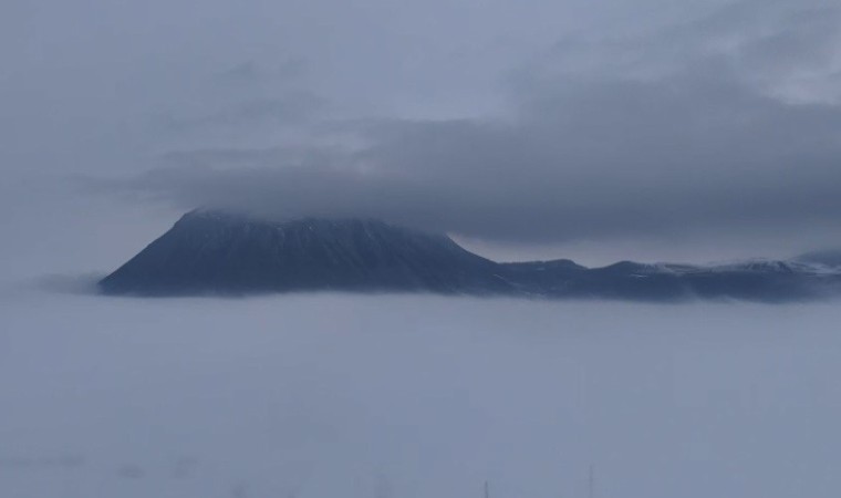Bitlis’in Güroymak ve Tatvan ilçelerinde etkili olan sislerin içinde kaybolan dağlar kartpostallık görüntü oluşturuyor.