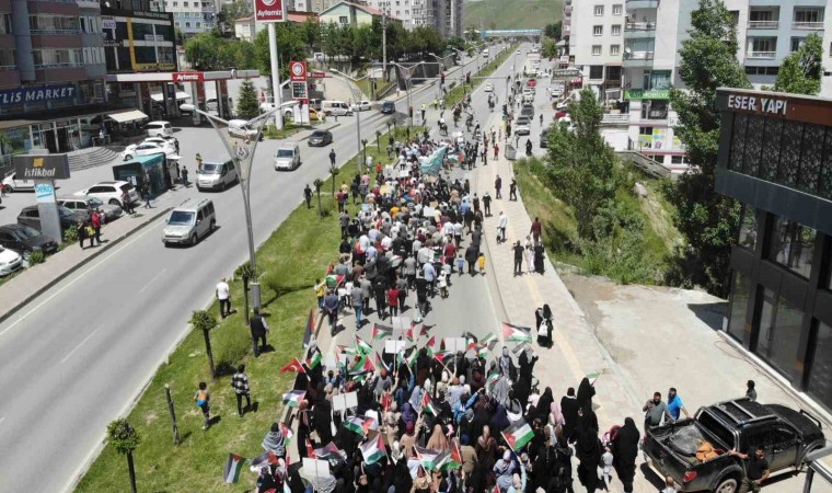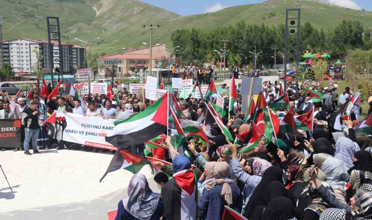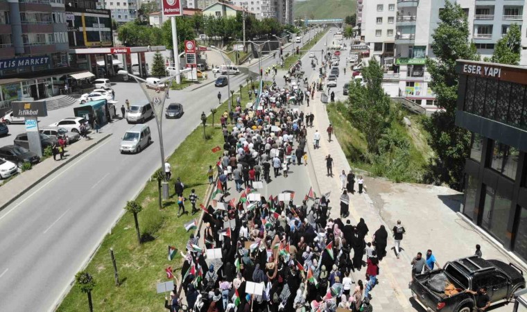Bitlis merkezde bulunan Hacı Mehmet Şirin Cami önünde toplanan kalabalık, Mevlana Parkına kadar sloganlar atarak yürüdü. Burada Kuran-ı Kerim’in okunmasının ardından basın metnini okuyan Bitlis Filistin Dayanışma Platformu üyelerinden Behzat Durak, Gazze’yi desteklememenin cihattan kaçmak olduğunu dile getirdi. Siyonistlerin Kudüs, Aksa ve Filistin’e yönelik saldırılarının Müslümanların savunma cihadı yapmasını gerektirdiğini vurgulayan Durak, “Müslüman halkın elinden geldiğince seferber olması, elindeki tüm imkânlarla düşmana saldırması veya düşmanın ve destekçilerinin elçiliklerine giderek protesto etmesi farzdır. Bu cihetle bu gün buradayız. Sekiz ayı aşkın bir süredir Gazze’de soykırımda bulunan siyonist İsrail rejimi; dün gece yeni bir caniliğe imza atmış ve başarısızlıklarını, verdiği kayıpları, esir edilen askerlerini unutturmak ve dünya gündeminden uzak tutmak için Refah’ta onlarca Filistinliyi bombalarla yakarak şehit etmiştir. Siyonistler, insanlıktan uzak bir halde terör saldırılarını sürdürürken, gerçekleşen bu son saldırı sözün bittiği yer olmuştur. Uluslararası Adalet Divanı’nın saldırıları durdurma kararı aldığı Gazze Şeridi’ndeki Refah kentinde yerinden edilen Filistinlilerin çadırlarını bombalayan siyonistlerin anlayacağı tek dilin güç olduğu da net bir şekilde bir kez daha ortaya çıkmıştır” dedi.