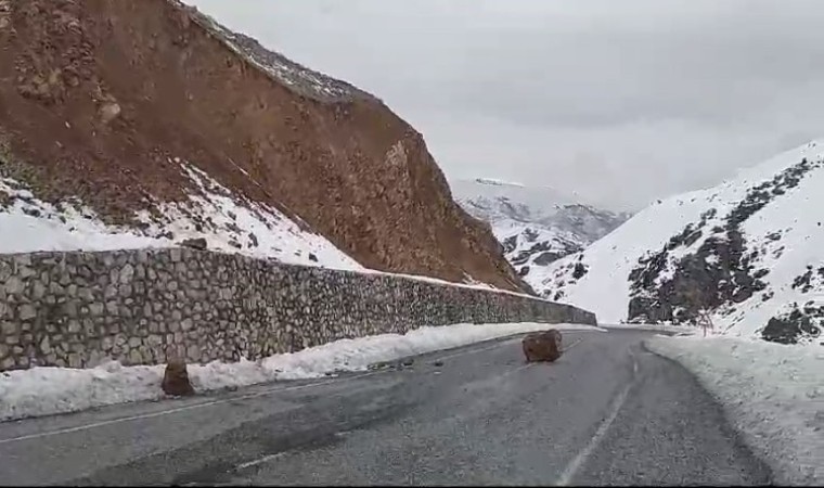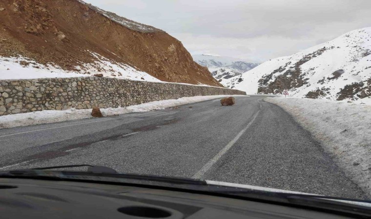 Bitlis’in Hizan ilçesine yola düşen kaya parçaları sürücülere zor anlar yaşattı.