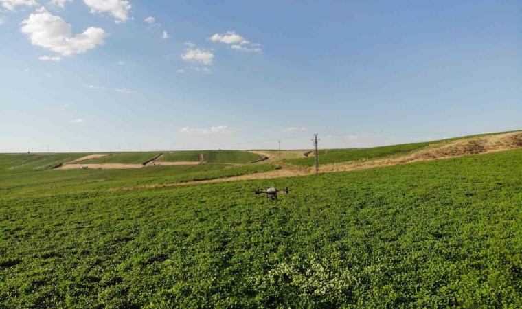 Bitlis’in Tatvan ilçesindeki çiftçiler daha fazla verim, su, zaman ve işçi maliyetlerinden tasarruf etmek için ekili arazilerinin ilaçlanmasını dronla yapıyor.