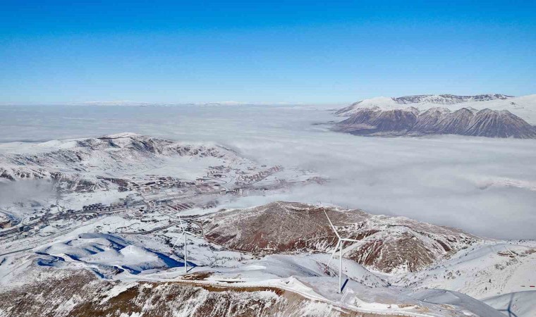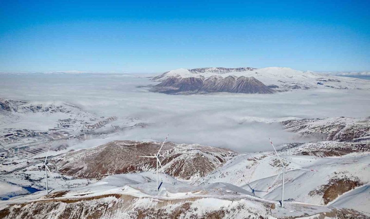 Bitlis’teki rüzgar güllerinin sisli dağlarla görüntüsü seyri doyumsuz manzaralar oluşturuyor.