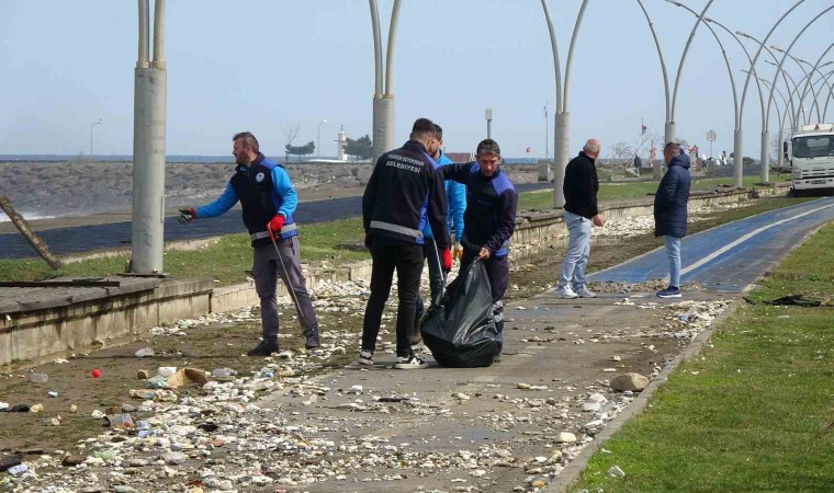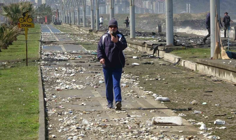 Karadeniz’de hafta başından beri etkili olan kötü hava koşulları özellikle sahil kesimlerini olumsuz etkiledi. Yoğun dalgalar, denize atılan çöpleri geri verirken dalgaların getirdiği çöpler sahilde çirkin görüntü oluşturdu.