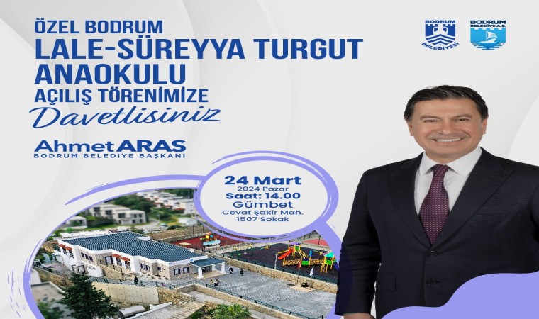 Bodrum Belediyesi tarafından vatandaşların hizmetine sunulan Özel Bodrum Lale-Süreyya Turgut Anaokulu ve Bodrum Belediye AŞ Akyarlar Kafenin açılışı gerçekleştirilecek.