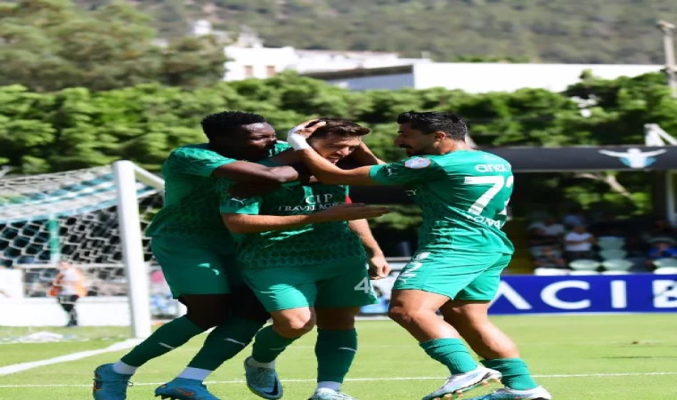 Fırat AKAY / BODRUM, (DHA) - Bodrum Futbol Kulübü, 1'inci Lig'in 7'nci haftasında Çorum FK'yı evinde 2-1 mağlup ederek zirve yürüyüşünü sürdürdü. Geçen sezon final oynadığı ligde son 4 maçında 3'üncü galibiyetini elde eden yeşil-beyazlı ekip, 14 puana yükselip lider Eyüpspor'u 4, ikinci Bandırmaspor'u ise 1 puan geriden takibini sürdürdü.