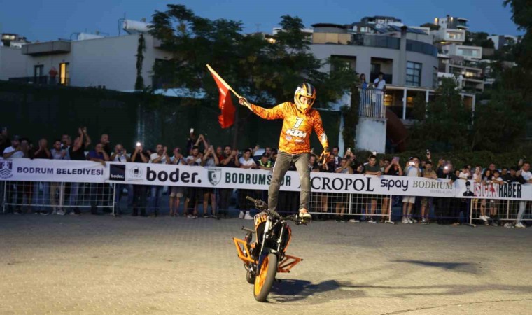 Festival kapsamında motosiklet akrobasi şampiyonu Birkan Polat nefes kesen gösteriye imza attı. Polat, motosikletiyle izleyenlere adrenalin dolu dakikalar yaşattı. Gösteri sırasında Polat, Bodrum Kaymakamı Mustafa Çit’in elinde bulunan Türk bayağını alarak motosikletin üzerine çıktı. Bodrum İlçe Emniyet Müdürlüğü’nde görevli trafik polisi memuru Gökhan Genç, Polat’ın nefes kesen gösterisine motosikletiyle eşlik etti. Yüzlerce yerli ve yabancı turist Polat’ın gösterisini fotoğraf ve video çekerek ölümsüzleştirdi.