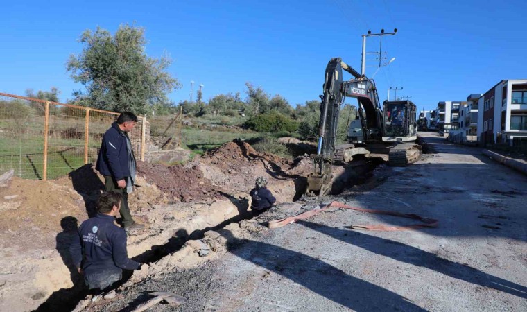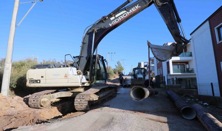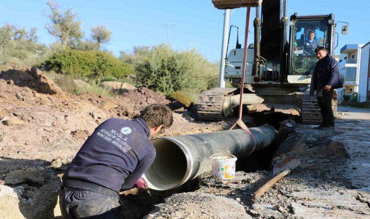 Muğla Büyükşehir Belediyesi Bodrum Mumcular Mahallesi Karaova mevkiinde sürekli patlayarak kayıp kaçaklara ve kesintilere neden olan içme suyu hatlarını yeniliyor.