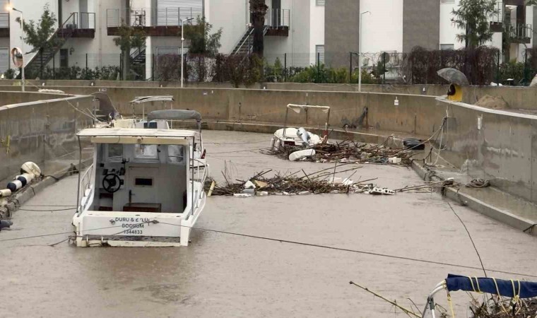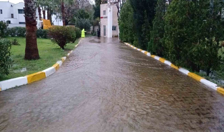 Muğla’nın Bodrum ilçesinde etkili olan sağanak yağmur, hayatı olumsuz etkiledi. Dün gece başlayan yağışlar sabah saatlerinde şiddetini artırarak cadde ve sokakları adeta göle çevirdi. Gümbet Mahallesi’nde üç evi su basarken, taşan dere yatakları ve kapanan yollar vatandaşlara zor anlar yaşattı.