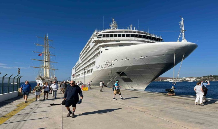 Bahamalar bayraklı 210 metre boyundaki Silver Spirit, Rodos Limanı’ndan Bodrum’a geldi. Gemide ağırlıklı olarak Amerikalı ve İngiliz olmak üzere toplam 572 yolcu ve 403 personel bulunuyor. Gemi, gece saatlerinde Kuşadası’na hareket edecek