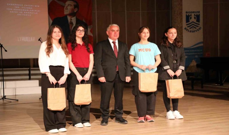 Derece elde eden öğrencilere Bodrum Kaymakamı Mustafa Çit, Garnizon Komutanı Per. Albay Ertan Benli ve Bodrum Belediye Başkan Yardımcısı Tanju Aksu tarafından hediye takdim edildi. Katılımcılar tarafından ilgi ile takip edilen program “Bizim Çanakkale” adlı gösteri ile son buldu.