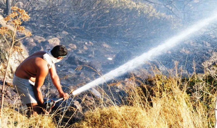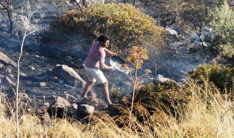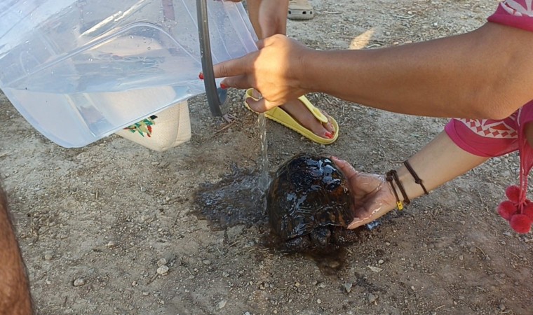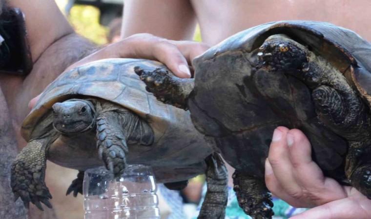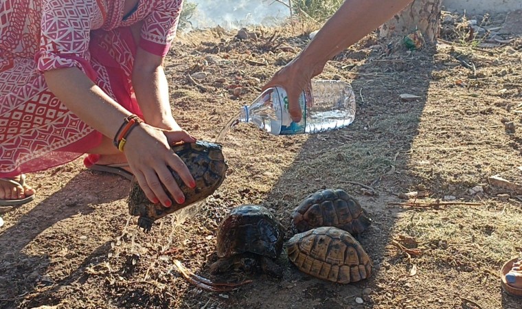 Yangına müdahale eden tatilciler ise, yaklaşık 10 kaplumbağayı yangın bölgesinden alarak kurtardı.