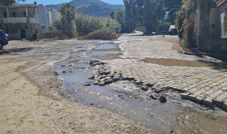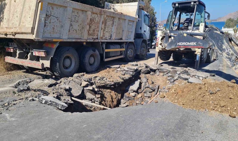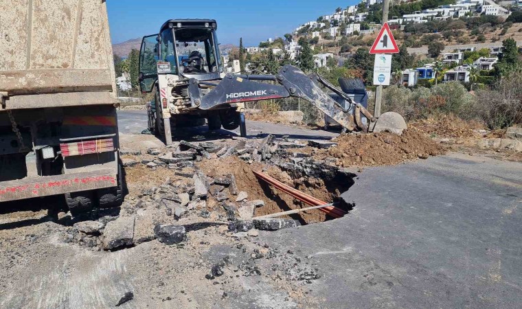 Muğla’nın Bodrum ilçesinde ana isale hattı patladı, tonlarca su etrafa saçıldı.