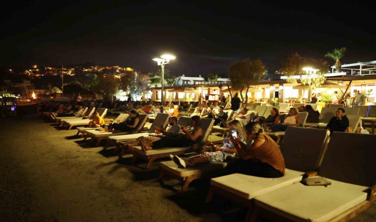 Türk Filmleri Haftası etkinliklerinin son günü, Bitez sahiline denizin ortasına kurulan dev sinema platformu 9 saatlik bir çalışmayla tamamlandı. Suya yerleştirilen ses sistemleriyle birlikte, devasa beyaz perdede “Efsane” filmi gösterildi. Ekip, son ana kadar hazırlıklarını sürdürdü. Film başladıktan sonra ise izleyiciler şezlonglara uzanıp filmin keyfini çıkardı.