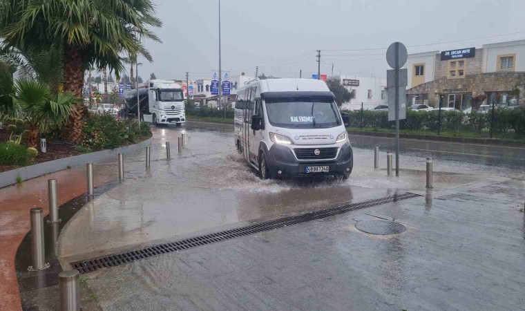 Sabah saatlerinde aralıklarla etkili olan sağanak yağmur nedeniyle vatandaşlar ve araç sürücüleri zor anlar yaşadı. Yağış nedeniyle cadde ve sokaklar göle döndü, debisi yükselen derelerden akan sel suları denizin rengini kahverengiye çevirdi. Bazı cadde ve sokaklarda rögarlar taştı. Bodrum - Turgutreis Karayolu’nda sel sularıyla karayoluna sürüklenen taş ve toprak, Karayolları ekipleri tarafından temizlendi.
