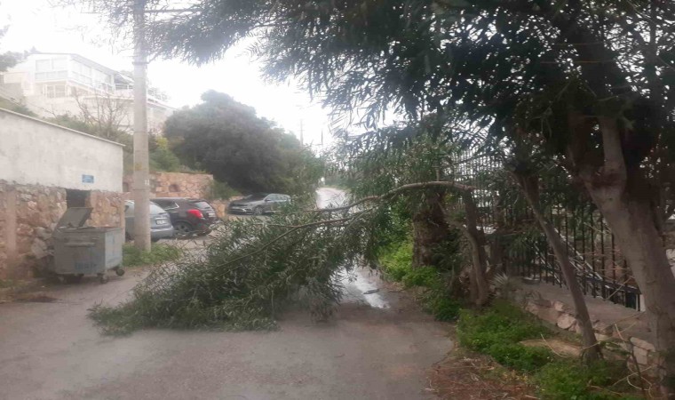 Muğla’nın Bodrum ilçesinde etkili olan fırtına ve gök gürültülü sağanak yağış, günlük yaşamı olumsuz etkiledi. Amatör balıkçı teknesinin karaya vurduğu ilçede ağaçlar devrildi, cadde ve sokaklar göle döndü.
