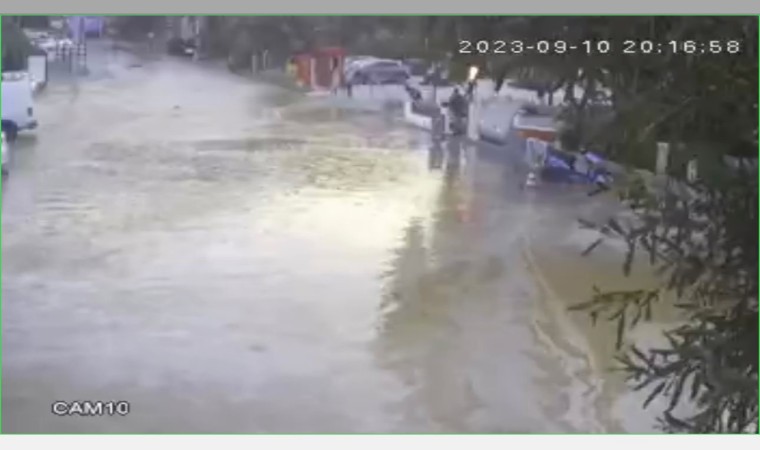 Muğla’nın Bodrum ilçesi Bitez Mahallesi’nde daha önce defalarca patlayan isale hattı, yeniden patladı. Cadde dereye döndü, bir restoranı su basarken o anlar güvenlik kamerasına yansıdı.