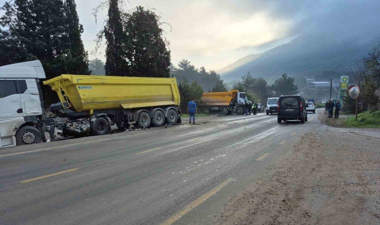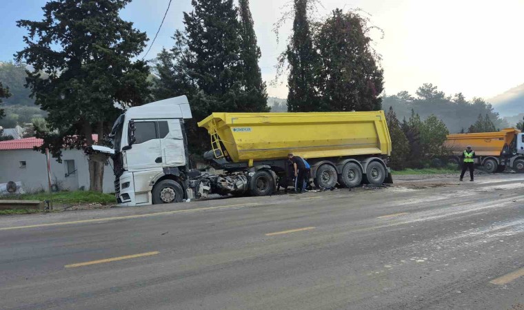 Muğla’nın Bodrum ilçesinde 2 hafriyat kamyonunun çarpıştığı kazada 1’i ağır 2 kişi yaralandı.