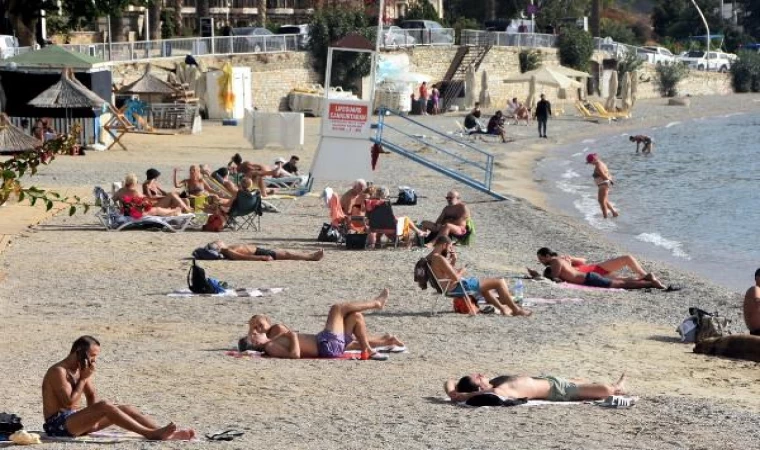 Bodrum'da hava sıcaklığı 29, deniz suyu sıcaklığı ise 25 derece oldu. Yerli ve yabancı turistler; kasım ayında başta Kumbahçe olmak üzere Bitez ve Ortakent sahilinde denize girdi. Plajdakilerden bazıları güneşlenirken, bazıları da kitap okudu. Denize giren çocuklar ise eğlenceli vakit geçirdi. (DHA)