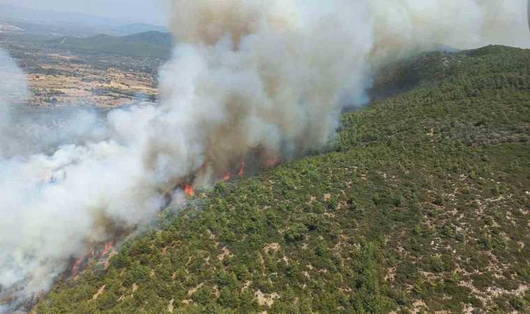 Muğla’nın Bodrum ilçesinde orman yangını meydana gelirken, ekipler yangını kontrol altına alabilmek için havadan ve karadan yoğun çalışma başlattı.