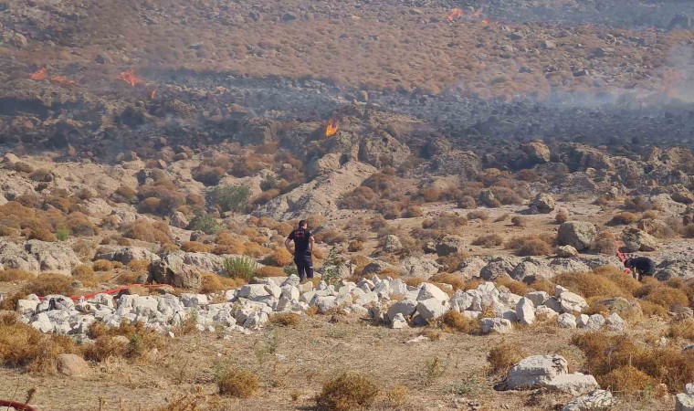 Muğla’nın Bodrum ilçesinde otluk alanda çıkan yangın, havadan ve karadan müdahaleyle kontrol altına alındı.