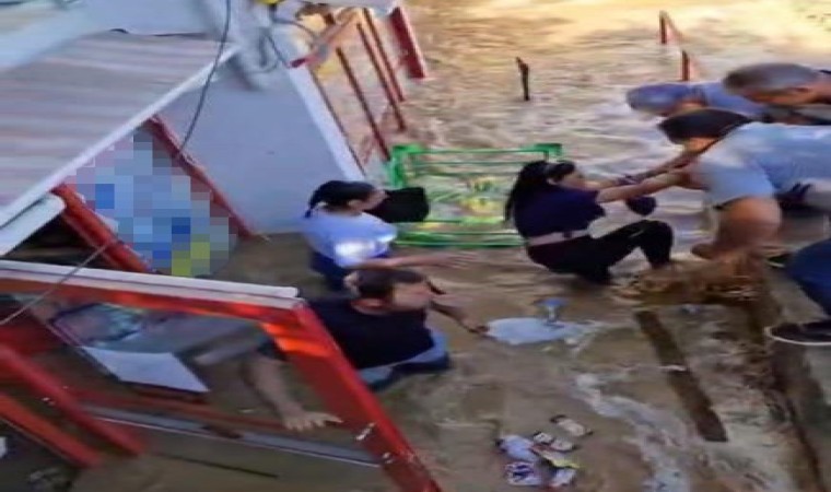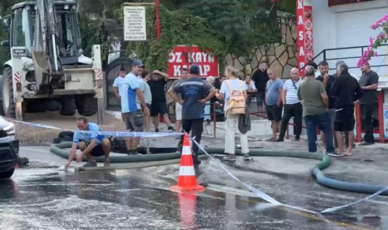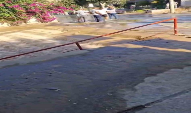 Muğla’nın Bodrum ilçesinde ana isale hattında meydana gelen patlama, süpermarketi ve çevredeki bahçeleri sular altında bıraktı. Tonlarca su markete dolarken, içeride mahsur kalan müşteriler ve çalışanlar, vatandaşların yardımıyla tahliye edildi.