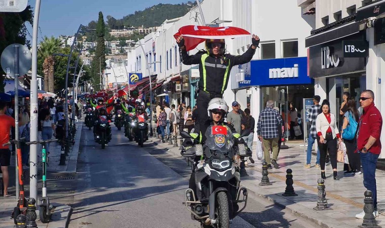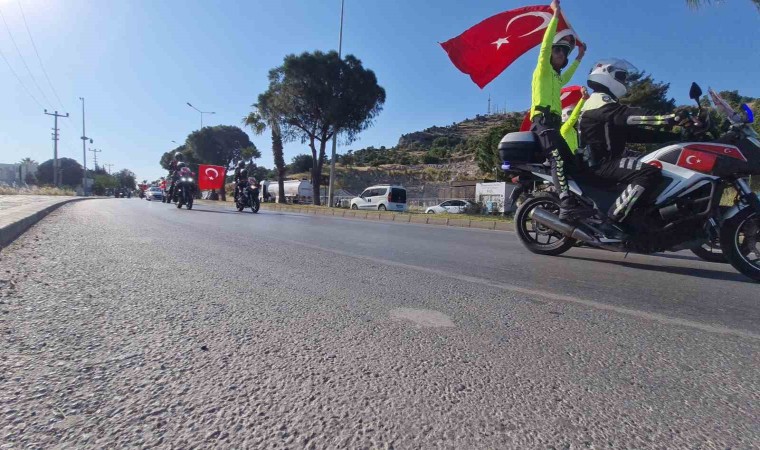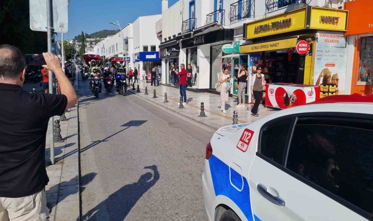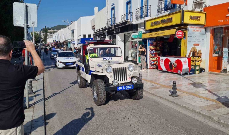 Türk Polis Teşkilatı’nın 179. kuruluş yıl dönümü, düzenlenen etkinliklerle kutlanıyor. Bodrum İlçe Emniyet Müdürlüğü ekipleri de bu kapsamda 10 motosiklet, 3 otomobil ve 1 turizm polisi aracıyla şehir turu yaptı. Eski Otogar içerisindeki polis noktasından hareket eden ekipler, Cevat Şakir Caddesi, Neyzen Tevfik Caddesi ve Osman Nuri Bilgin Caddesi’nde Değirmenler mevkisine ilerledi. Kıbrıs Şehitleri Caddesi’nden de geçen ekipler, şehir turunu tamamladı. Türk Bayrakları taşıyan polislerin geçişini, yerli ve yabancı turistlerle ilçede yaşamını sürdüren vatandaşlar ilgiyle takip etti, o anları cep telefonları ile kayıt altına aldı.