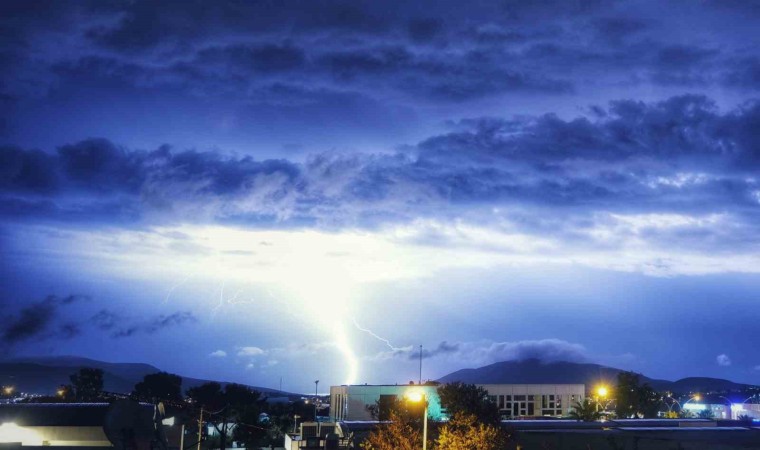 Muğla’nın Bodrum ilçesinde gece boyunca etkili olan yağmurla beraber çakan şimşekler, ilçeyi aydınlattı.