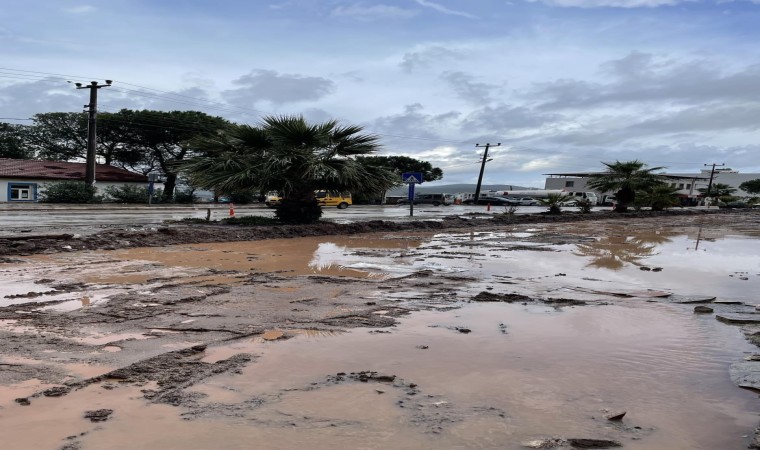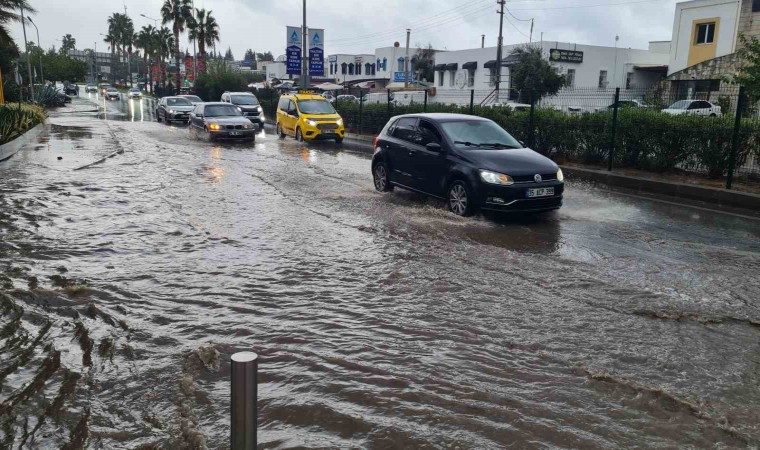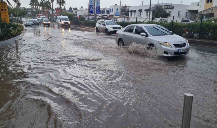 Muğla’nın Bodrum ilçesinde etkili olan sağanak yağışta yollarda su birikintileri oluştu.