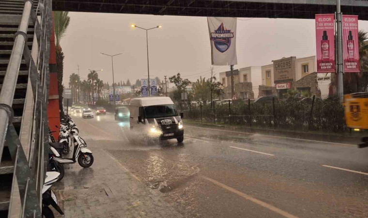 Bodrum’da aralıklarla sağanak yağış etkili oluyor. Bugün akşam saatlerinde aniden bastıran sağanak yağış, günlük yaşamı olumsuz etkiledi. Yağmura sokakta yakalanan vatandaşlar, sığınacak kapalı alan aradı. Yağış nedeniyle cadde ve sokaklarda su birikintileri oluştu, bazı caddeler göle döndü. Sürücüler zor anlar yaşadı. Yağış anı ve sonrasında rögarlar taştı, derelerin debisi yükseldi. Öte yandan Meteoroloji Genel Müdürlüğü Muğla için turuncu kod uyarısı yaptı. Yapılan uyarıda "Yapılan son değerlendirmelere göre Pazar ilk saatlerden itibaren Muğla’nın batısında aralıklı ve yerel olarak kuvvetli (21-50 kg/m2), Muğla merkez ve doğusunda yerel olarak çok kuvvetli ve şiddetli (51-100 kg/m2) gök gürültülü sağanak yağış beklendiğinden sel, su baskını, yıldırım, ulaşımda aksamalar, yağış anında kuvvetli rüzgar gibi olumsuzluklara karşı dikkatli ve tedbirli olunmalıdır" ifadeleri yer aldı.