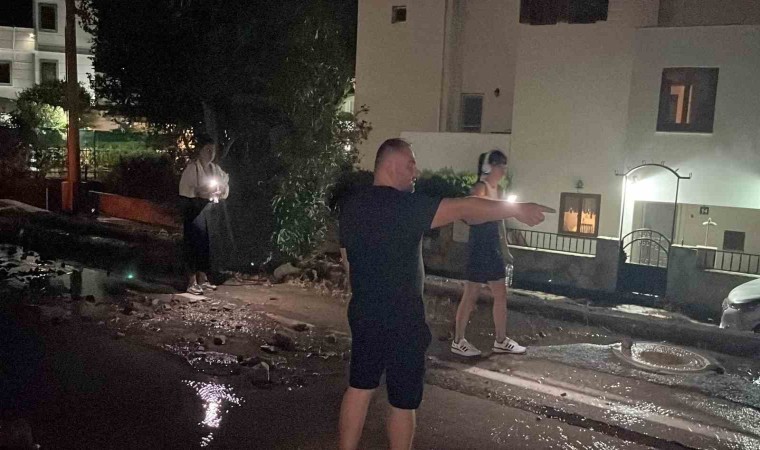 Muğla’nın Bodrum ilçesi Ortakent Yahşi Mahallesi’nde, Kargı Caddesi’nde meydana gelen ana su hattı patlaması sonucu cadde adeta göle döndü. Patlama, Kargı Caddesi üzerinde bulunan bir evin bahçesini tamamen suyla doldurdu.