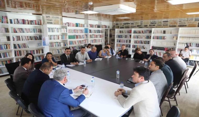 Herodot Kültür Merkezindeki toplantıda, 18 saat çalışarak evlere su ve depo temini sağlamaya çalıştıklarını belirten Başkan Aras, yapılan toplantının amacı ve hedefini anlattı.