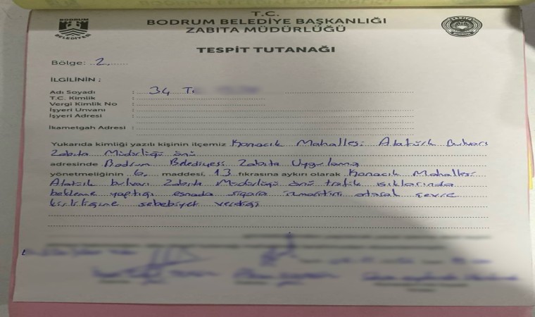 Bodrum Belediyesi Zabıta Müdürlüğü ekiplerince genel denetim ve uygulamaların yanında çevre kirliliğine sebep olan vatandaşlarla ilgili de uygulamalar devam ediyor. Denetim ve uygulamalar kapsamında sigara izmaritlerini yere atanlara yönelik Bodrum Belediyesi Zabıta Uygulama Yönetmeliği’nin 6. maddesinin 13. fıkrası gereğince yasal işlem yapılıyor.