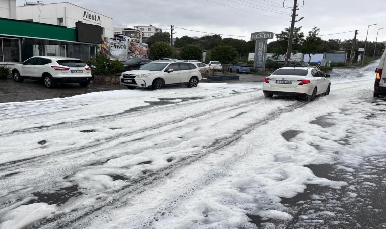 Edinilen bilgiye göre, Bitez Mahallesi Gavaklısarnıç Caddesindeki yolda birden köpük oluşmaya başladı. Yağmurla beraber ortaya çıkan köpük, dakikalar içerisinde giderek artmaya başladı. Yolda oluşan yoğun köpük tabakasını vatandaşlar meraklı gözlerle izledi. Yola dökülen kimyasal bir maddeden kaynaklandığı düşünülen köpüğün olduğu noktadan geçen sürücüler de araçlarını kaydırmamak için dikkatli şekilde ilerledi. Vatandaşlar, Bodrum Belediyesi Temizlik İşleri Müdürlüğü ekiplerine ihbarda bulundu. Belediye ekipleri caddede temizlik yaptı. Köpüğün yola dökülen deterjandan kaynaklandığının tahmin edildiği nasıl ortaya çıktığı ile ilgili inceleme yapıldığı bildirildi.