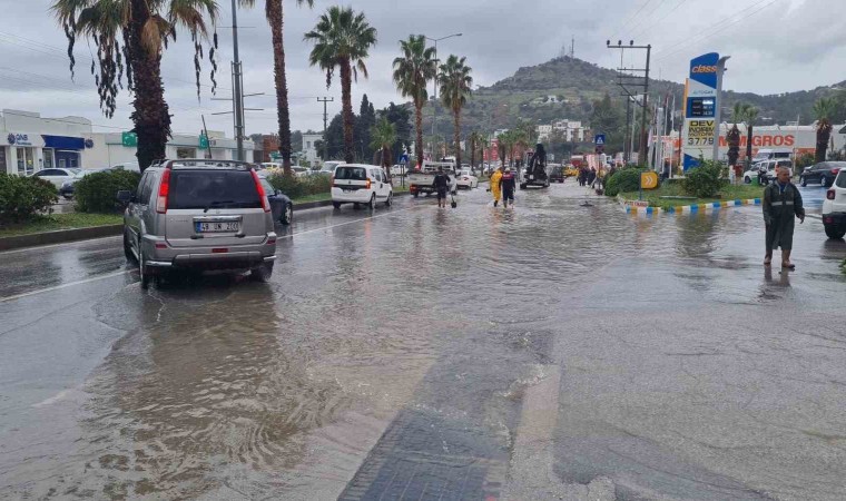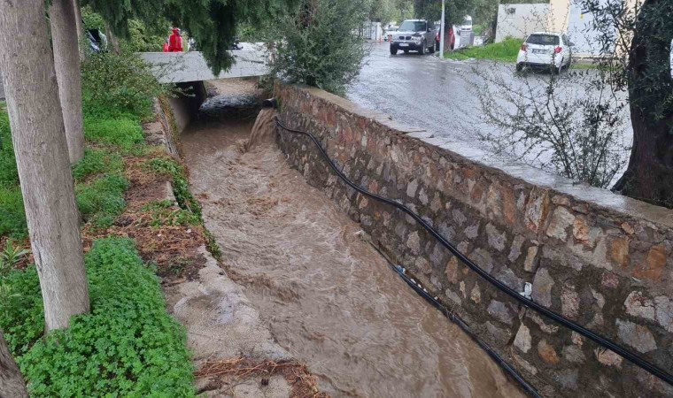 Muğla’nın Bodrum ilçesinde etkili olan sağanak yağış nedeniyle yollar dereye döndü, bazı yollar yağış nedeniyle trafiğe kapandı.