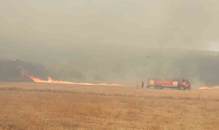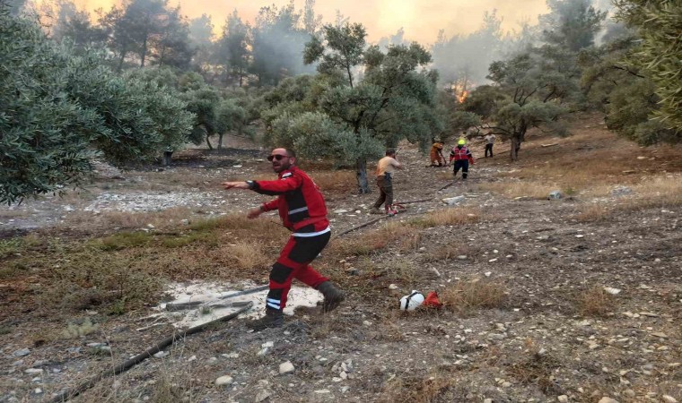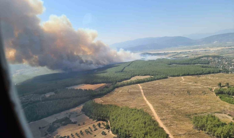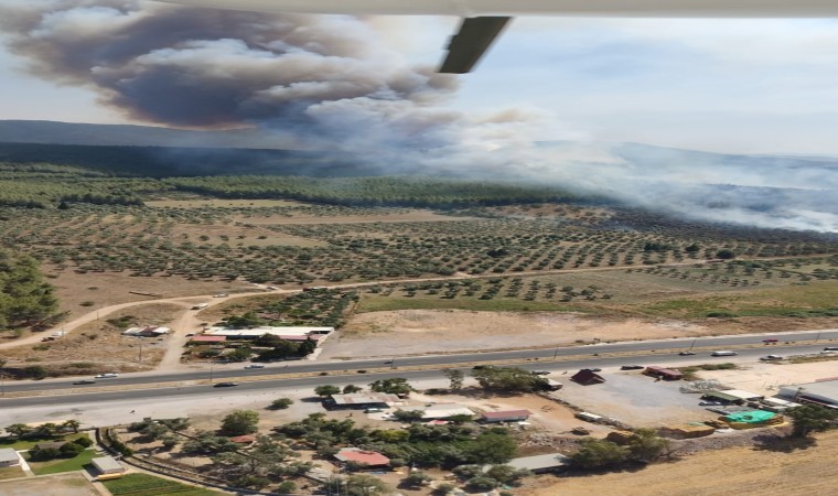 Milas-Bodrum karayolu havalimanı kavşağında çıkan ve yayılan orman yangınına karadan ve havadan müdahale devam ediyor.