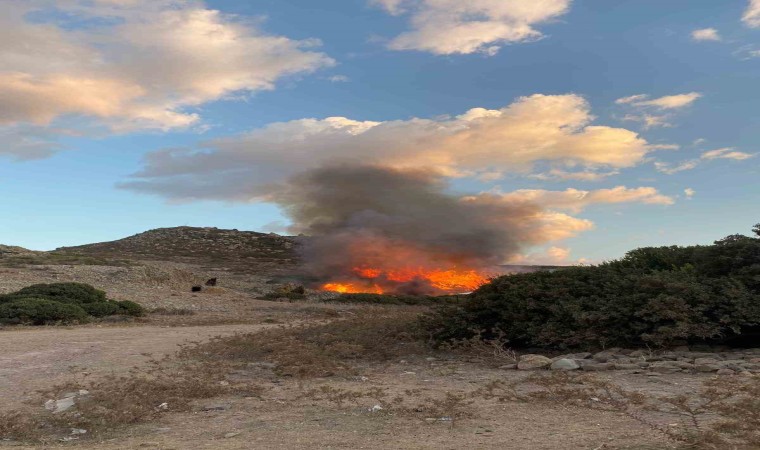 Muğla’nın Bodrum ilçesinde çıkan yangında 60 dönüm otluk ve makilik alan zarar gördü.