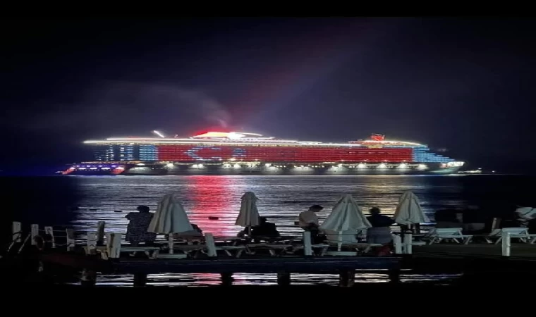 Bodrum’dan ayrılan Bahamalar bandıralı yolcu gemisinden ’Türk bayrağı’ ışıklandırması yansıtıldı