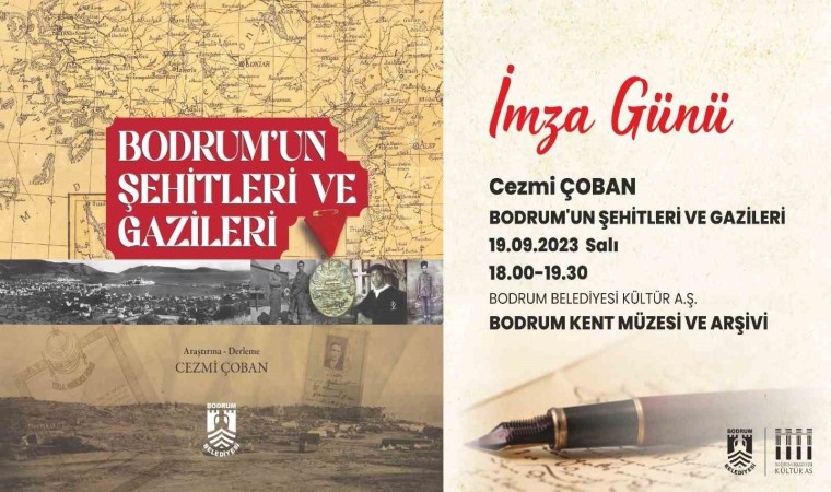 Bodrum Belediyesi Kültür Yayınları arasında yerini alan “Bodrum’un Şehitleri ve Gazileri” kitabının imza günü etkinliği düzenleniyor. “Bodrum’un Şehitleri ve Gazileri” kitabı imza günü, Çarşı Mahallesi Eski Sanat Okulu Sokağı’nda bulunan Bodrum Belediyesi Kültür AŞ Bodrum Kent Müzesi ve Arşivi’nde 19 Eylül Gaziler Günü’nde saat 18.00’de gerçekleşecek.