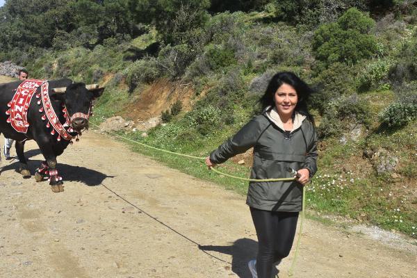 Fırat AKAY/BODRUM(Muğla),(DHA)-MUĞLA'nın Bodrum ilçesinde oğlu Çınar'ın (8) ismini verdiği boğası 'Goca Çınar' ile güreşlere katılan Buse Bozdağ (27), 7 Mayıs'taki Milas Boğa Güreşleri'ne hazırlanıyor. 'Boğaların efesi' olarak anılan Bozdağ, 2'nci çocuğuna 8 aylık hamile olduğu sırada arenaya çıktığını belirterek, "Herkes arenada heyecandan doğum yapacağımdan korktu" dedi.