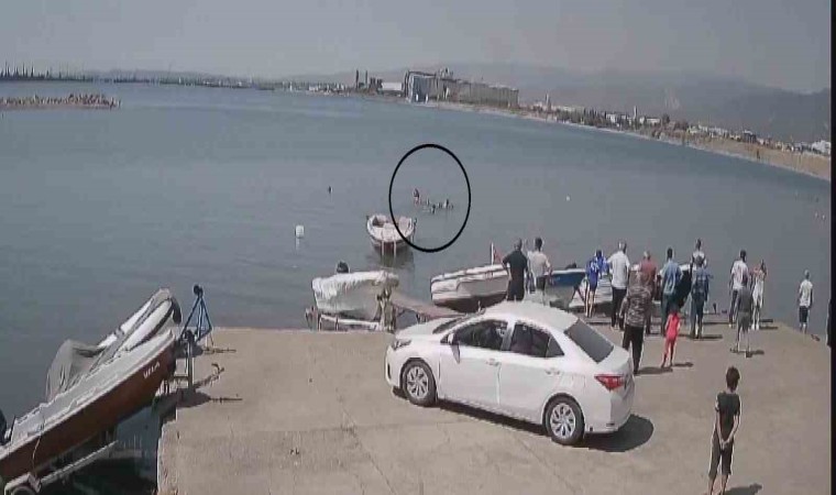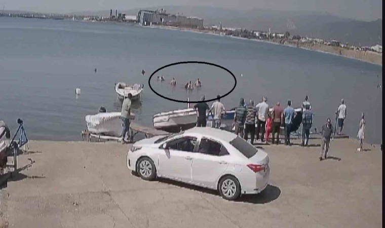 Hatay’ın Payas ilçesinde boğulma tehlikesi yaşayan 2 kişinin yardımına çevredeki vatandaşların yetiştiği anlar güvenlik kamerasına yansıdı.