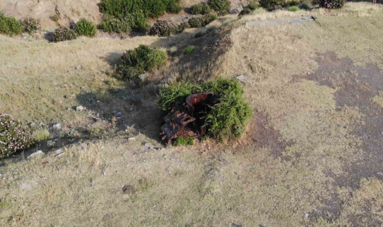 Osmaniye’nin Gebeli Mahallesi’nde dağlık alanda bulunan ve neden orada olduğu bilinmeyen tank, vatandaşların ilgi odağı haline geldi.
